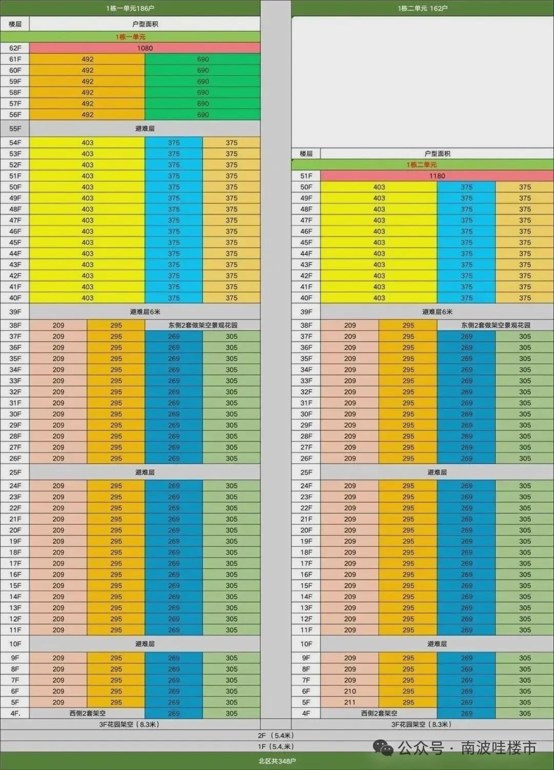 ——低区 5F起(150米以内)是约209-304㎡四房大户型;