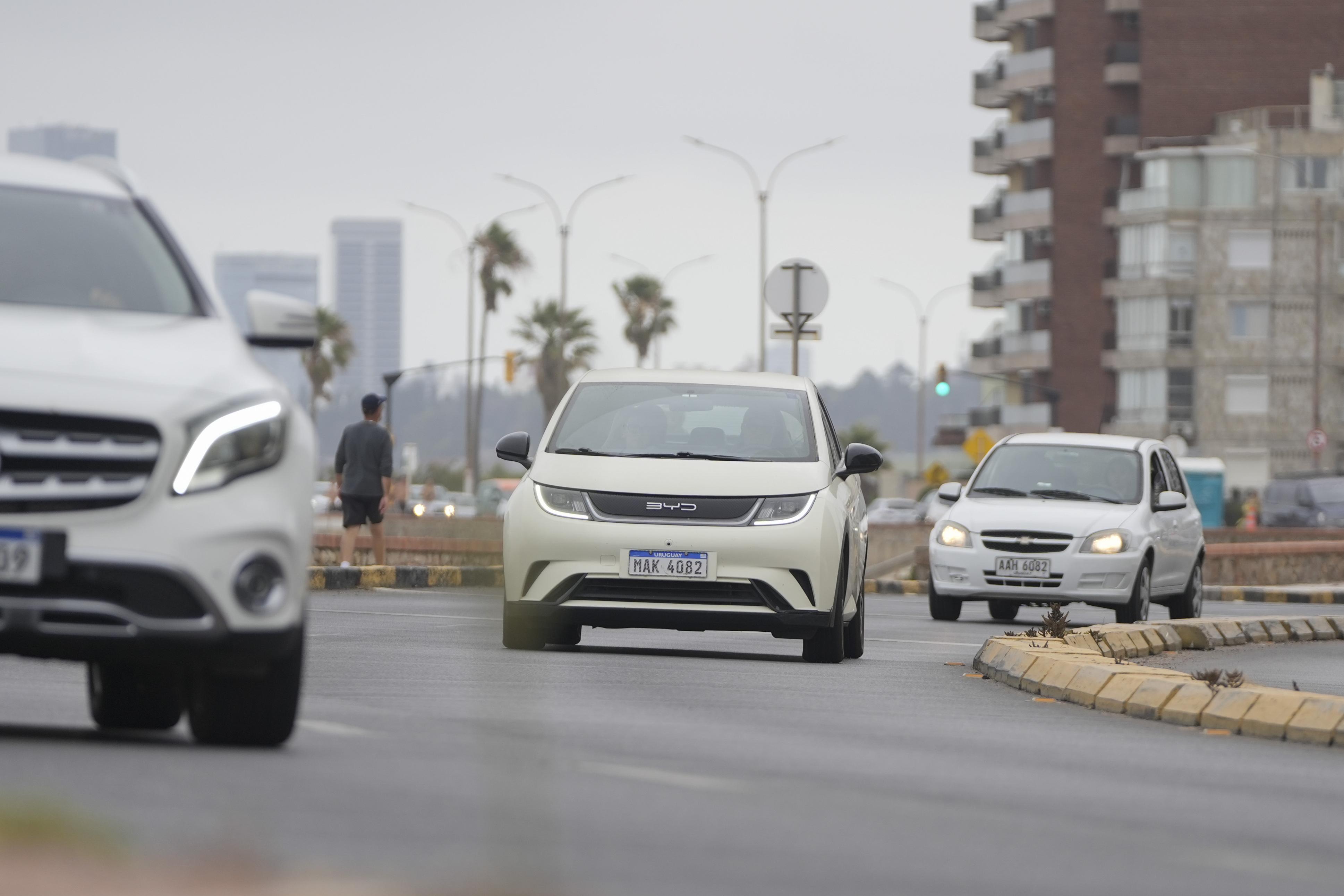 2025年12月22日,在乌拉圭首都蒙得维的亚,一辆中国新能源汽车(中)在路上行驶。新华社发(尼古拉斯·塞拉亚摄)