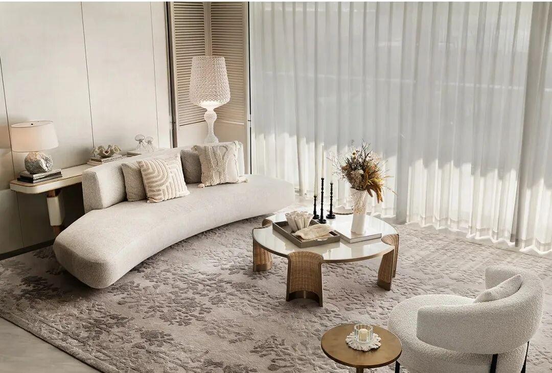 步入室内,就是约10㎡的私享电梯前厅,层高约3.5m,三面采光的公区,270°无柱环形端厅,延伸出约44米的观景面,尽显主人气场。