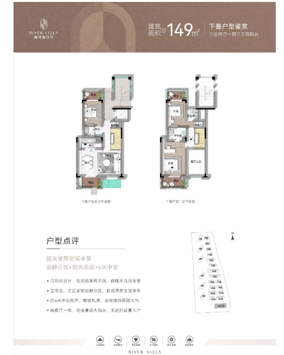 嘉河湾8号目前主推96㎡、116㎡高层精装洋房及139㎡上叠、149㎡下叠低密叠墅,全部采用新规设计,得房率高,空间利用率出色。96㎡三房实现南北对流,全屋高定奢装交付;116㎡三房配备超大主卧套房,提升私密与舒适度。叠墅产品更具亮点:上叠139㎡打造N+1高拓空间,配置三露台,实现空中庭院生活;下叠149㎡则拥有三卫四阳台,兼顾功能与景观。所有户型均强调东南朝向与河景视野,配合品牌精装体系——包括美国怡口净水、杜拉维特卫浴、高仪五金、新风系统等,全面兑现“高品质归家礼遇”,为花都改善客群提供极具竞争力的选择。