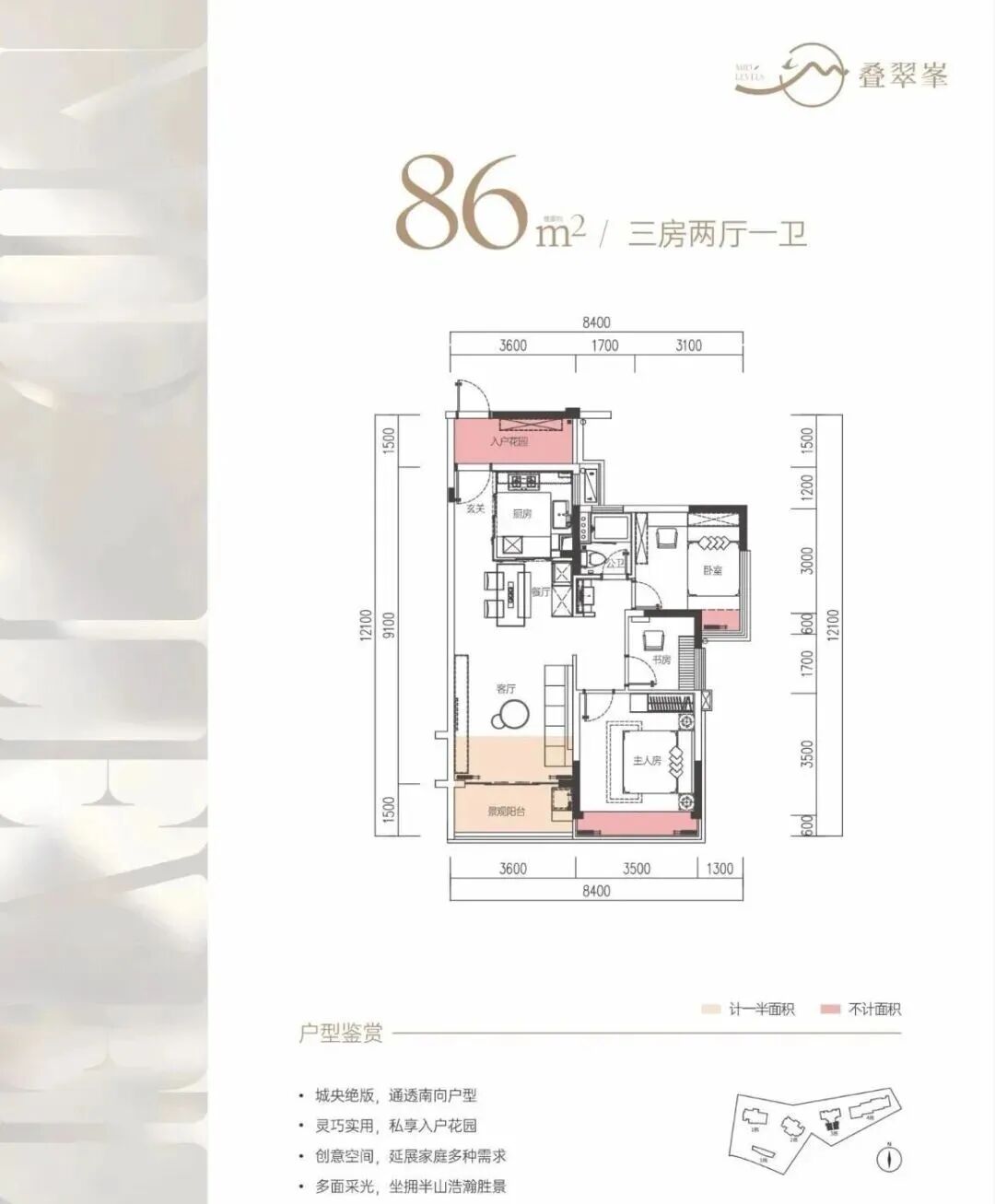 【户型全南北通透,高拓展空间,每一间房都有山、海、城一线景观,国际品牌精装】