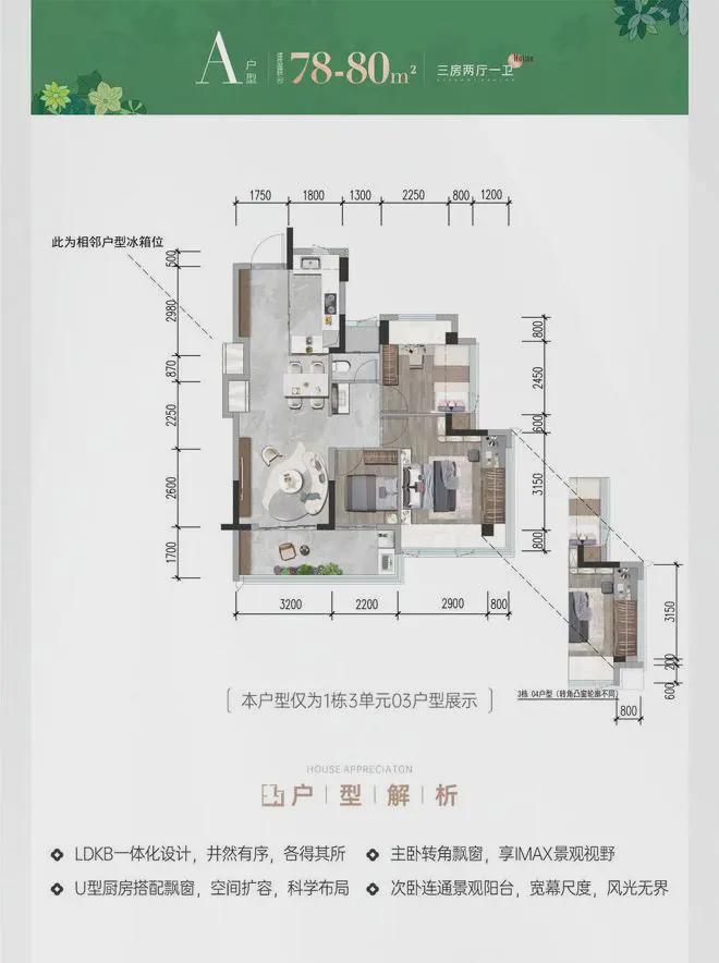 【建面78-82㎡3房1卫】