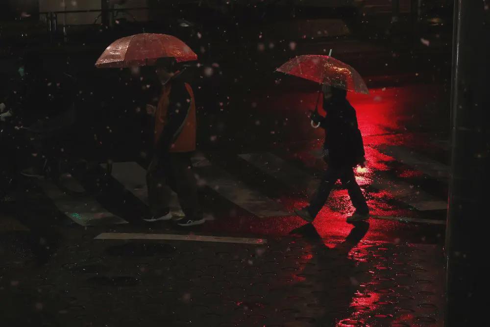 1月2日,行人撑伞走在日本东京街头。当日,受冷空气影响,日本东京降下2026年第一场雪。新华社记者 贾浩成 摄