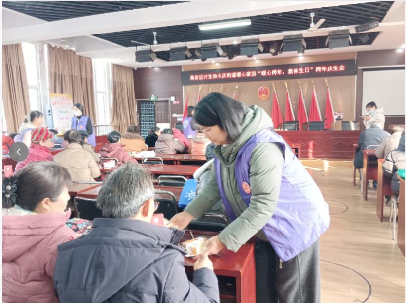 为在辞旧迎新之际为居民举办的温馨聚会,增强集体庆祝邻里凝聚力,传递关怀与祝福。12月31日上午,新年来临之际,大庆街道民政服务站联合社区在街道暖心家园开展“暖心跨年 集体庆生”跨年庆生会,五十多位位失独老人参加。