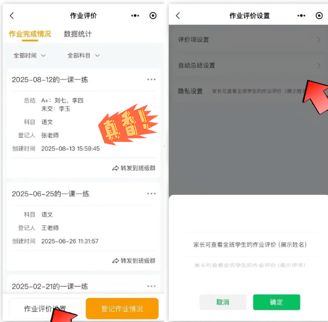 还能设置 “仅家长可见自己孩子的评价”,保护学生隐私,避免比较,家长看了也更安心~