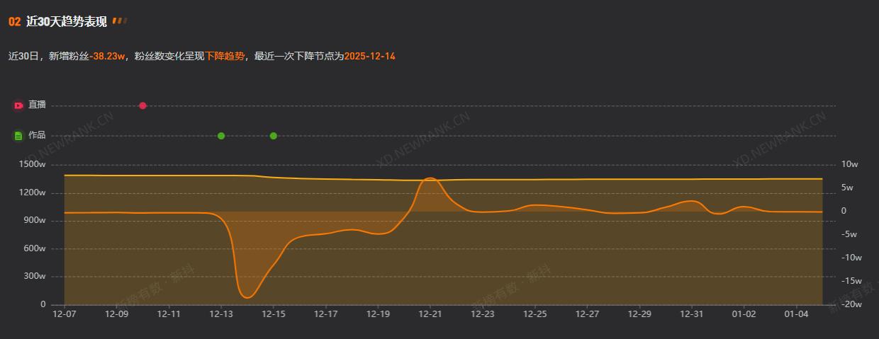 第三方数据显示,我是张凯毅视频平台近30日掉粉超38万。商业化水平显示,其1-20s、21-60s、60s以上视频广告报价分别为30.23万、37.2万和41.93万。