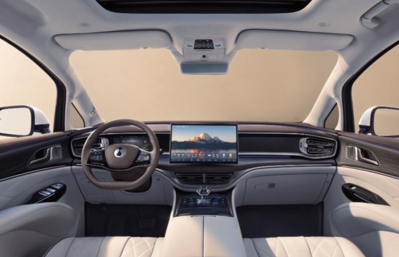 内饰部分,岚图梦想家在今年9月份更新后新增了内饰颜色,其整个中控设计依然是简洁的风格,采用大尺寸的悬浮中控屏幕,并配备了副驾驶娱乐屏,提升了车内的科技氛围。传统的挡把区域也变为手机无线充电区域,而换挡方式变成了当下流行的怀挡换挡,整体没有对中控区域过多的修饰。同时,岚图与华为深度合作,搭载了华为鸿蒙座舱5,交互方面流畅,语音识别与多设备互联体验出色。