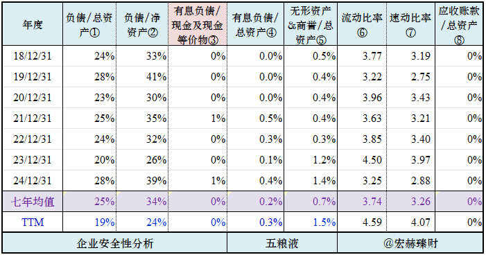结合公司业务和商业模式,分别从七年均值和去年末值来观察该公司的资产安全性和资金流动性。