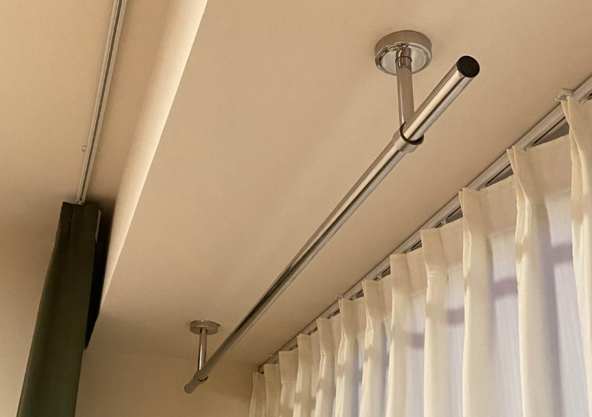 装修建议:隐藏式的晾衣杆,在安装之前要准确测量尺寸,它对安装精度要求很高,一般要与窗户墙体工程同步进行。