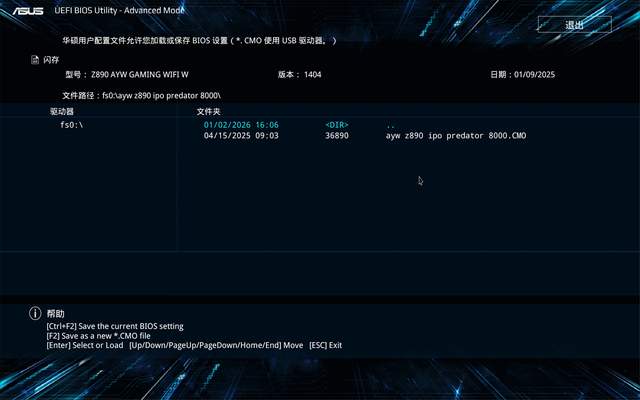 Step1:开启IPO优化的最关键的一步就是需要拿到官方给的IPO配置文件,通常是.CMO尾缀的一个的配置文件,主要核心内容也就是记录BIOS中的修改参数,对CPU和内存进行超频,优化内存时序等设置,从而实现电脑主机性能的全面提升。
