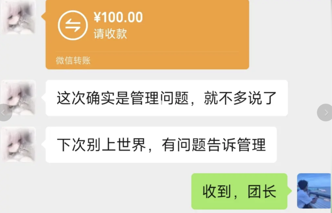 然后金主立刻下令,让团长打给这个铺路民工1000块钱,把这件事赶紧给结了。但金主安排的1000块,做账也做了1000块,然后团长只给那个铺路民工打了100块,贪了9成。