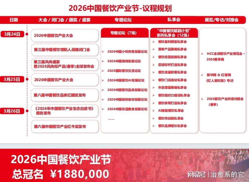 - 目标:构建覆盖餐饮全产业链的“新品展示+资源对接+趋势洞察”一体化平台,成为链接品牌方、供应商、服务商与投资者的核心桥梁,为6.8万亿元规模的中国餐饮市场注入全新活力。