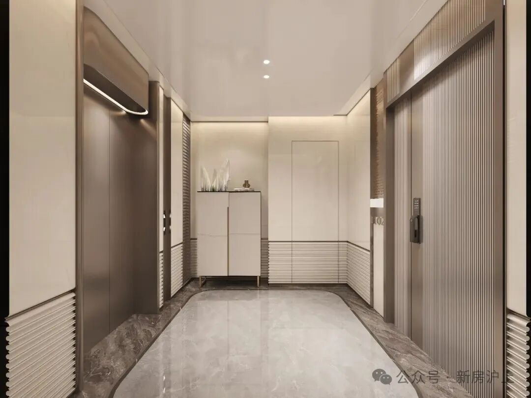 一进单元门,嘈杂的公共空间就被隔绝在外。专属电梯厅用柔和的灯光和雅致的色调,让你瞬间放松下来。