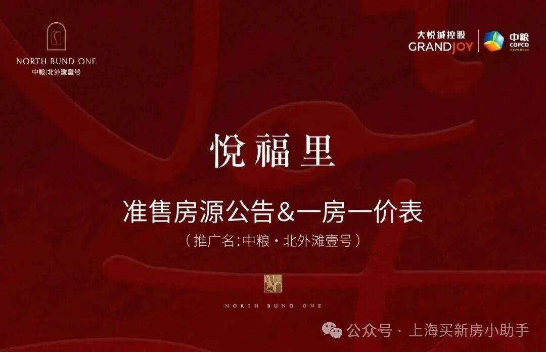 作为中粮大悦城在上海打造的第五座“壹号系”作品,该项目坐落于北外滩核心位置,此次共推出90套建筑面积约185-228平方米的四房房源,均价约为14.38万元/平方米。