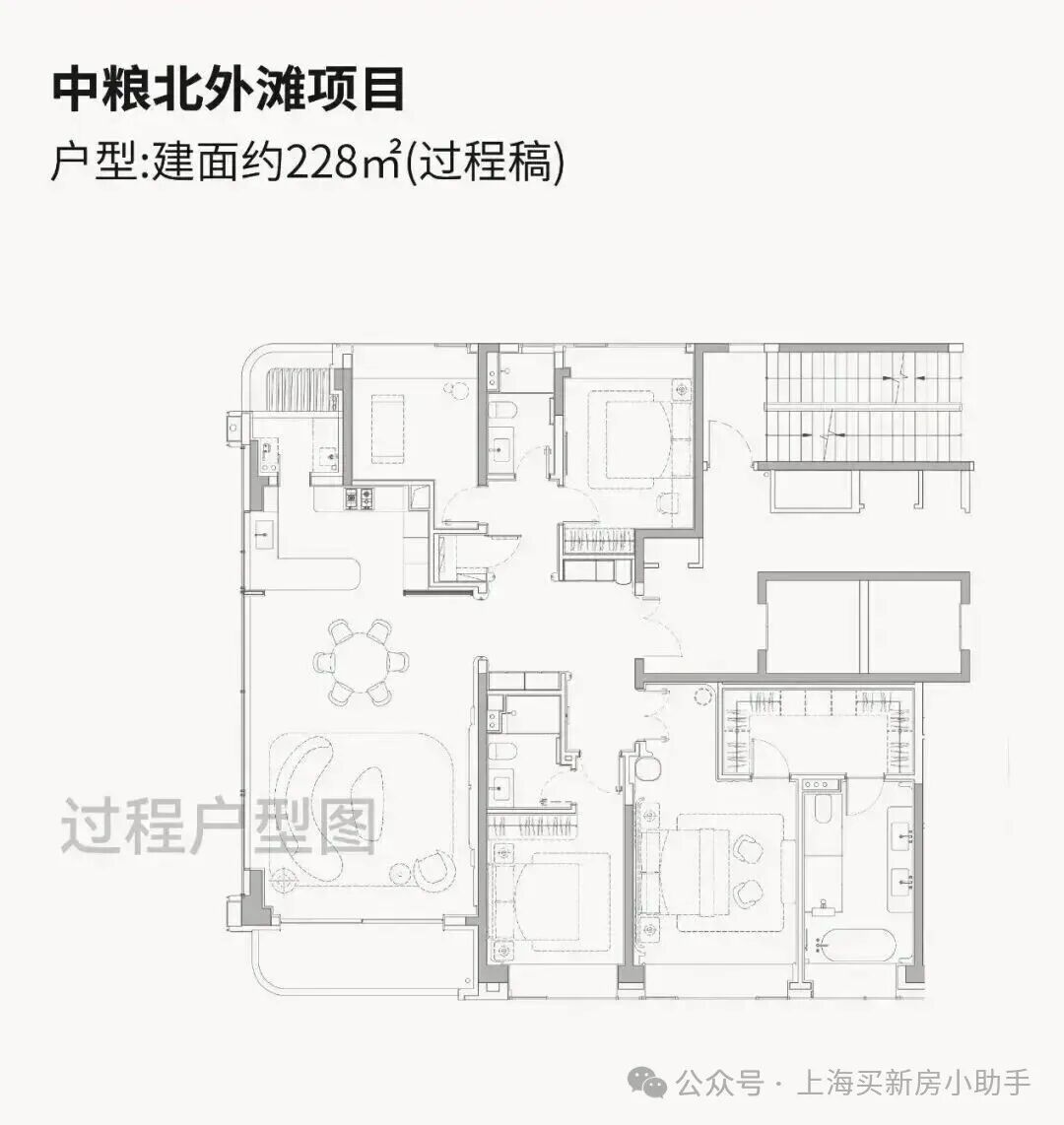 中粮·北外滩壹号 即将入市的高层户型建面约185-228㎡纯粹4房,尺度感相当奢阔!高层户型均为两梯两户独立电梯厅配置,隐私性与尊崇感拉满!