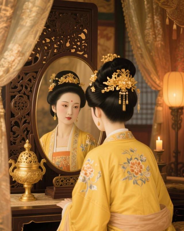 铜镜里那张脸,依旧眉目浓丽,指尖的嫣红却颤了颤,在唇边划开一道刺目的痕。反了?安禄山?那个曾在玉环面前跳胡旋舞、胖得像个球、满脸堆笑的胡儿?镜中的我忽然想笑,却听见自己冰冷的声音:“慌什么。圣人在哪里?贵妃呢?”