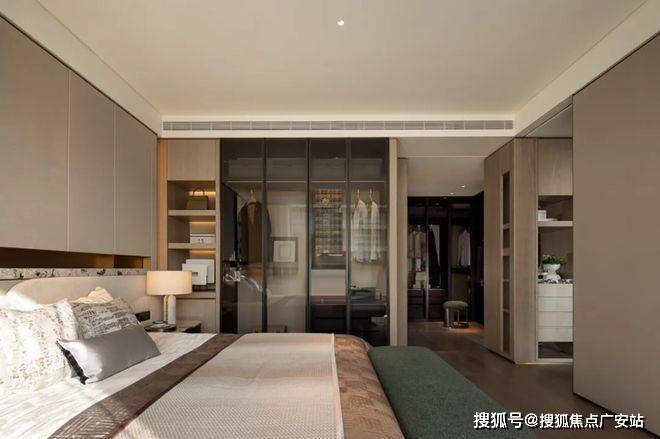 主卧采用套房设计,独立卫浴、预留衣橱空间,私密性较强;约270°转角飘窗,推窗即景,在这里既能拥抱阳光,也能留有独处的宁静。