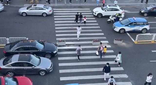 但行人那边也有话说。我同事小敏每天过公司楼下那条六车道就腿软:“有的车离斑马线五米才急刹,轮子都压线了!还有外卖电动车直接从我面前飘过,吓得文件夹掉一地。”她手机里存着张照片:雨天傍晚,老人牵着孩子缩在斑马线中间的安全岛,七辆车飞驰而过没一辆减速。
