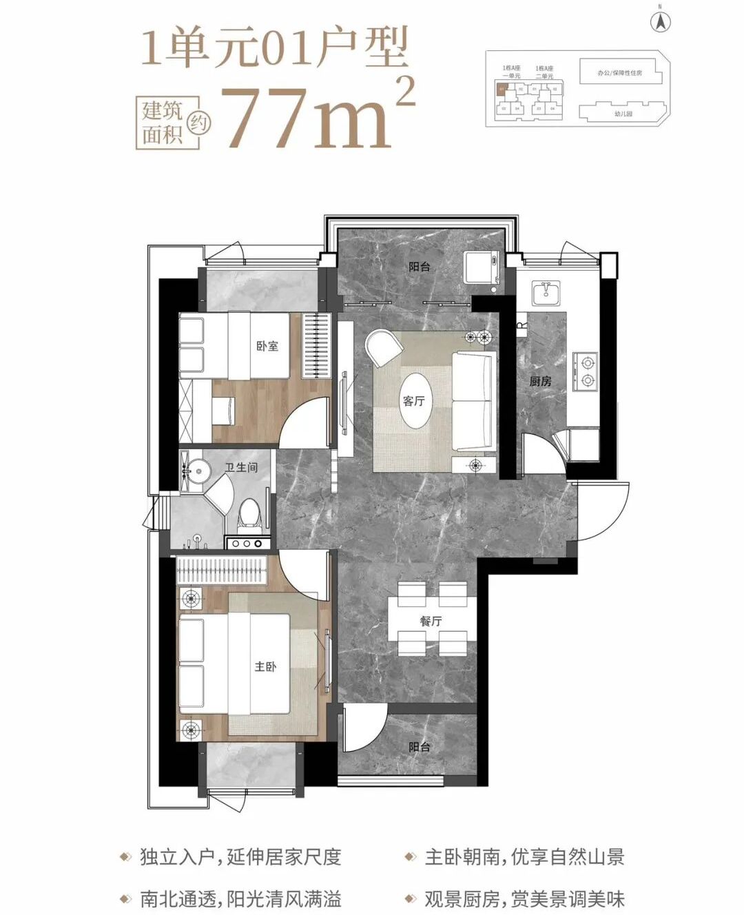 【建筑面积77㎡2房2卫】
