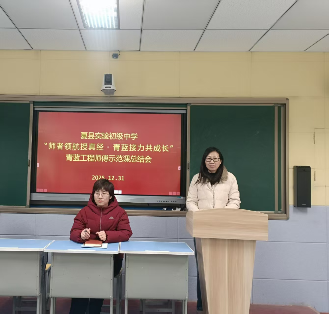 在师傅示范课总结会上,郑永军校长着重强调,我校“青蓝工程” 师徒结对的核心要义,绝非单向的“经验灌输”,而是赋能彼此成长的“发展共同体”。他指出,师傅的“传帮带”,不只是教学技艺的倾囊相授,更是教育情怀的赓续传承与教学智慧的深度传递,绝非简单复刻固化的教学模式;青年教师的“学思践”,也并非对前辈经验的被动照搬,而是在吸收借鉴基础上的创新突破与自我超越。郑校长进一步要求,师徒双方要始终锚定立德树人根本任务,以课堂教学为核心阵地,在互学互鉴、共进共促中凝聚育人合力,推动学校教师队伍建设与教育教学质量实现双向提升、同步进阶。
