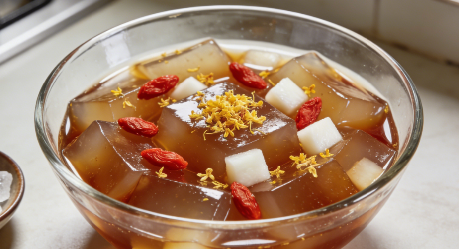 4. 再次煮沸后关火,撒上桂花即可。