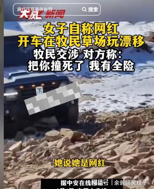 1月6日,各大官媒报道了一件让人愤怒的事情,在内蒙古赤峰一片牧场上,一位自称“网红”的浙江宁波女子,竟然肆意碾轧牧民草场。