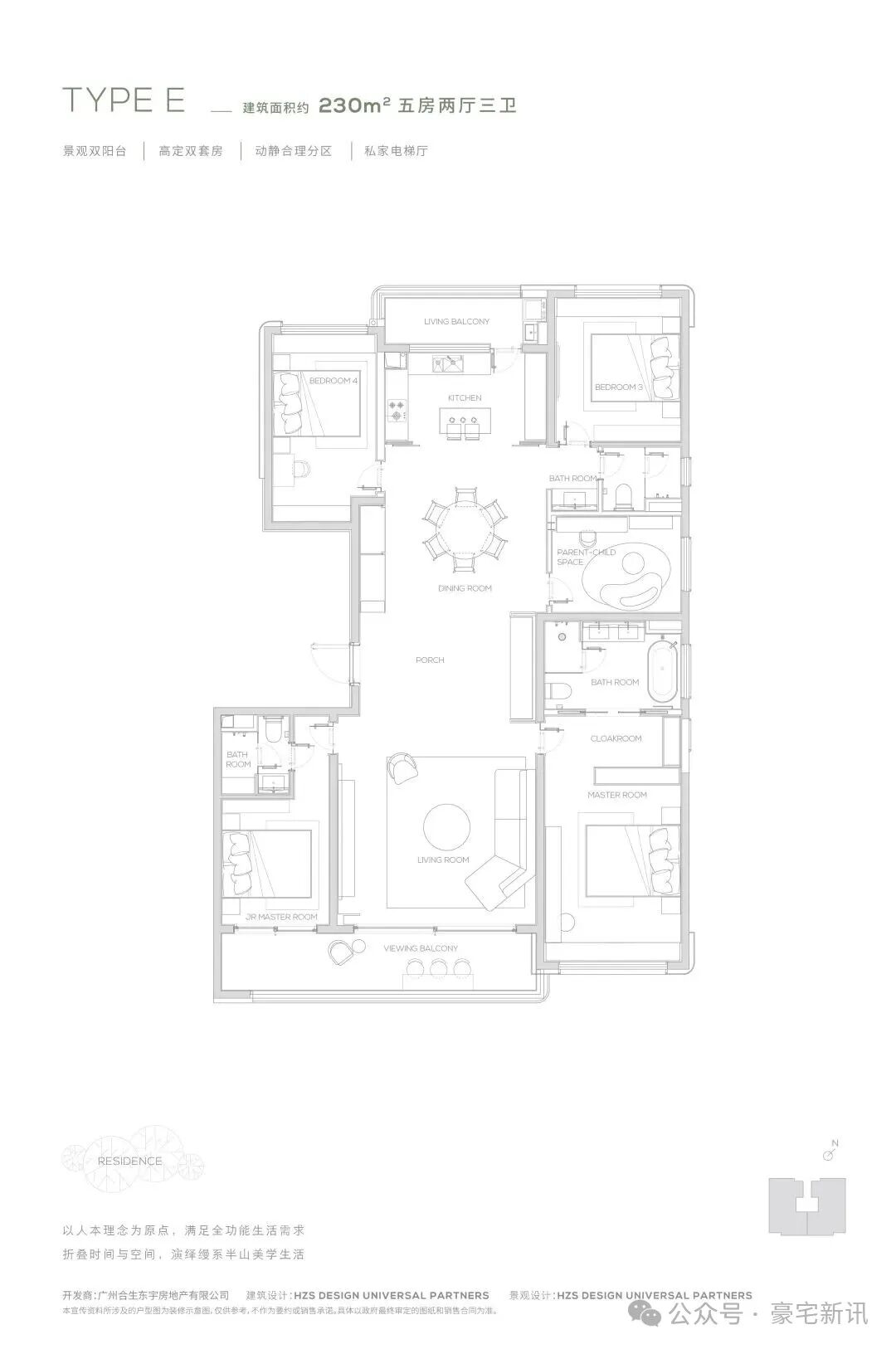 【230㎡户型】观景双阳台-高定双套间-私家电梯厅-双洄游动线