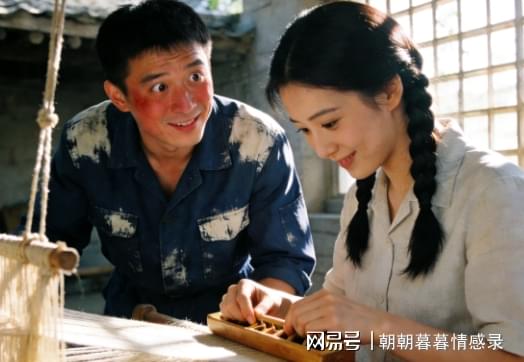 他身旁的织布姑娘垂着头,麻花辫遮住半张脸,