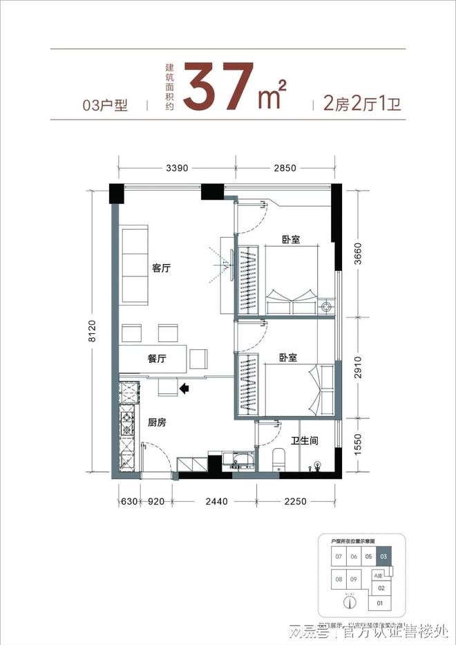 【产品面积】约37㎡小两房(实际套内使用面积接近54㎡)