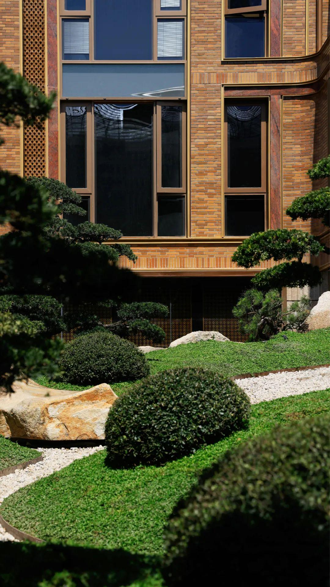 例如,在社区入户,目前已经完美呈现出来的,有强烈视觉冲击的立面大量的红砖、红洞石及大面积的落地弧形玻璃搭配的相得益彰,整个门头既有厚重的历史感,又不失极简主义的现代美。