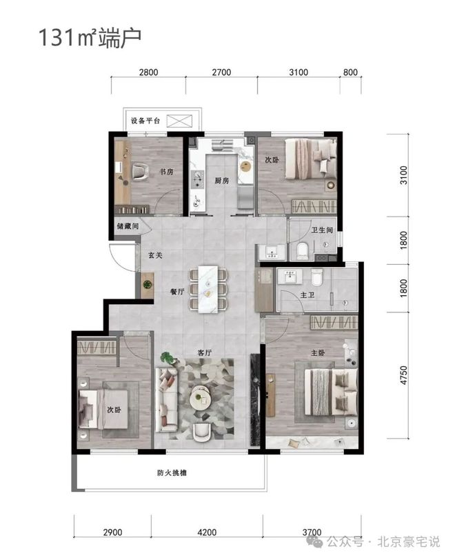 132-136㎡阔绰四居(改善主力):四叶草布局动静分离,南向双套房设计(主卧+长辈房),兼顾家人私密与尊崇;南向全景落地窗,电视背景墙岩板交付,床头背景墙带BV编织感元素;厨房配备方太高端烟机、灶具、洗碗机、烤箱,上轨推拉门纵享丝滑;玄关柜通顶设计,钢琴烤漆面与墙体融为一体,收纳空间充足。