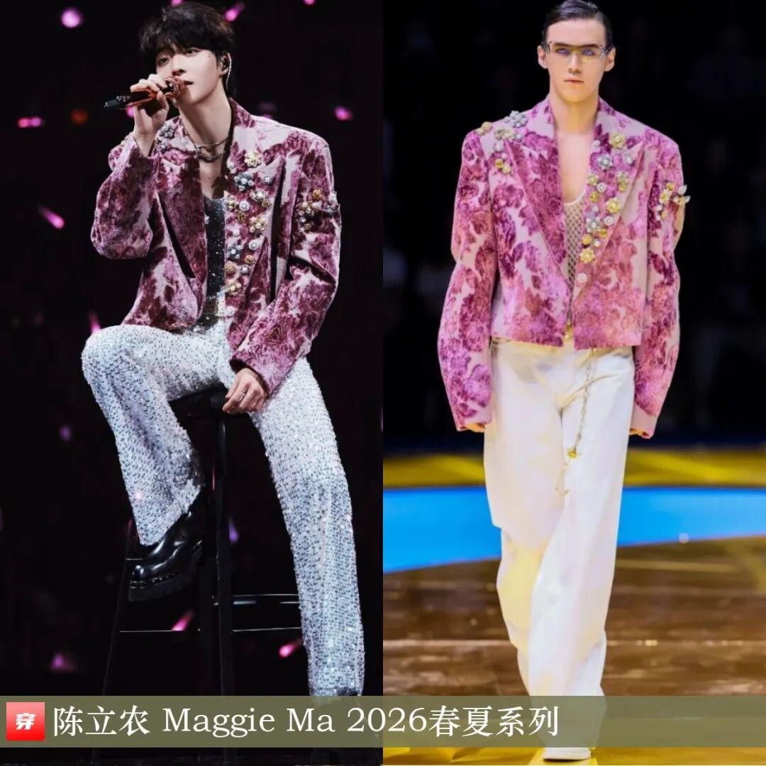 陈立农,「青春为名」个人巡回演唱会合肥站。紫色钉珠提花西装:Maggie Ma 2026春夏系列。