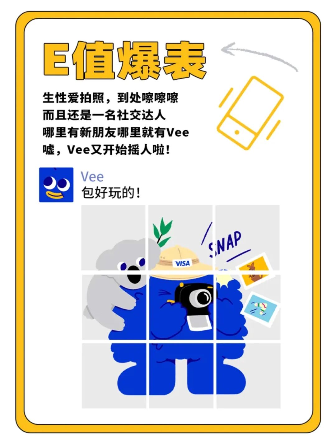 根据官方的介绍,它是 Visa 的吉祥物 Vee,在 2024 年底首次亮相后,就开始频繁刷起了存在感: