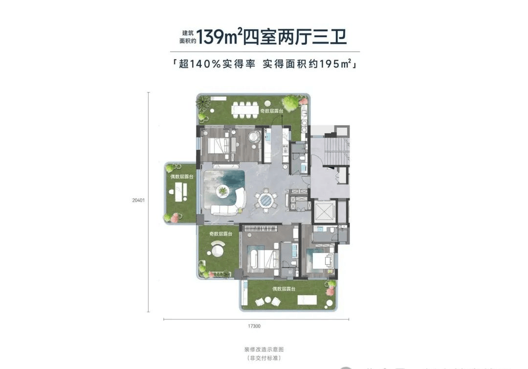 至多约141%实得率,建面约104-143㎡超四代云端院落