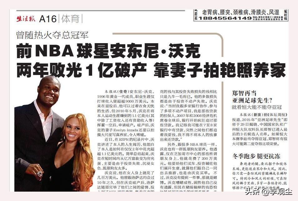 安东尼·沃克便是典型例子。这位全明星球员职业生涯总收入突破1亿美元,退役前也是众人眼中的富豪代表。