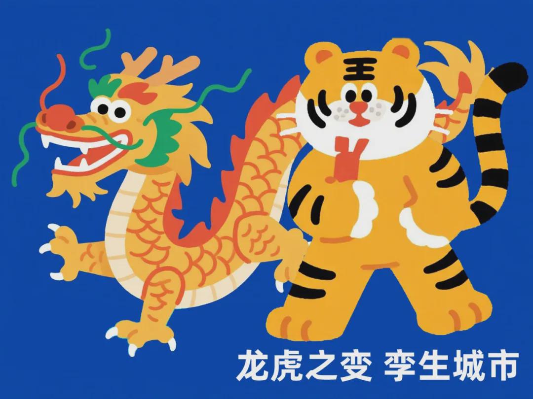 龙腾于天,虎跃于地,形态各异却气息相连。这象征着“孪生城市”的核心理念:未来城市,必将在现实与虚拟两个维度同步演化、共生共荣。