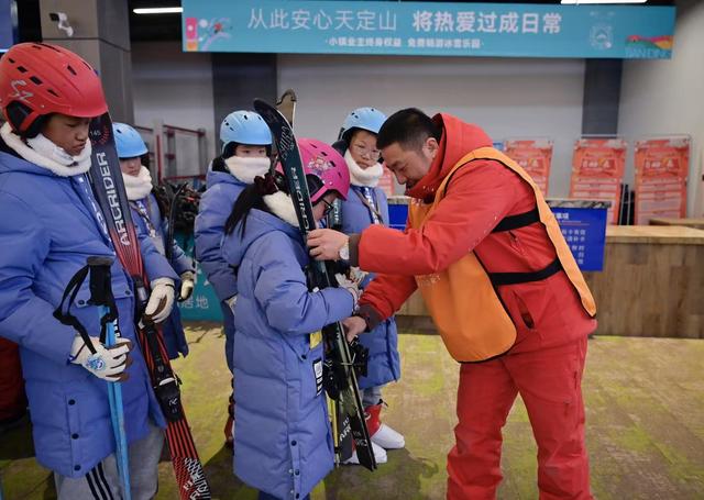 1月7日上午9点,长春天定山滑雪场刚刚开门营业,一群统一身着淡蓝色羽绒服的身影就出现在服务大厅。他们在排队领雪板时有说有笑,对马上要体验到的雪上“飞”充满期待。