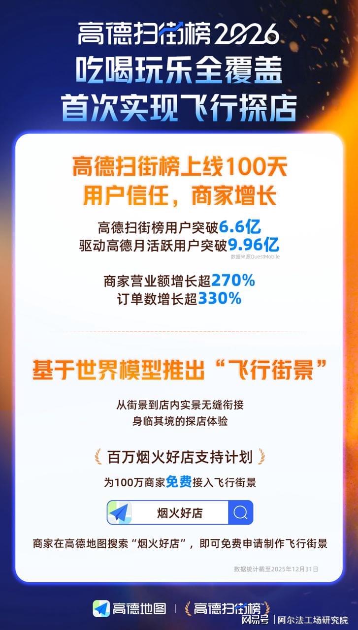 从“用脚投票”的真实榜单,到“身临其境”的飞行街景,再到“百万烟火好店支持i计划”的全面落地,高德正通过不断进化的产品和坚定的资源投入,服务亿万用户的真实生活,助力百万线下商家的长效经营。