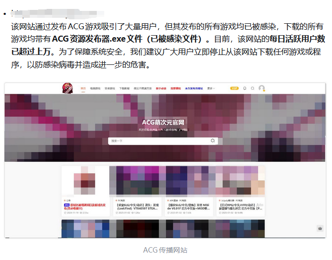 在2025年初,火绒也发布过一篇《警惕诱导行为|传统感染型病毒借ACG色情类游戏网站大规模传播》的报告(高情商:galgame 低情商:ACG类色情游戏)。彼时彼刻恰如此时此刻!