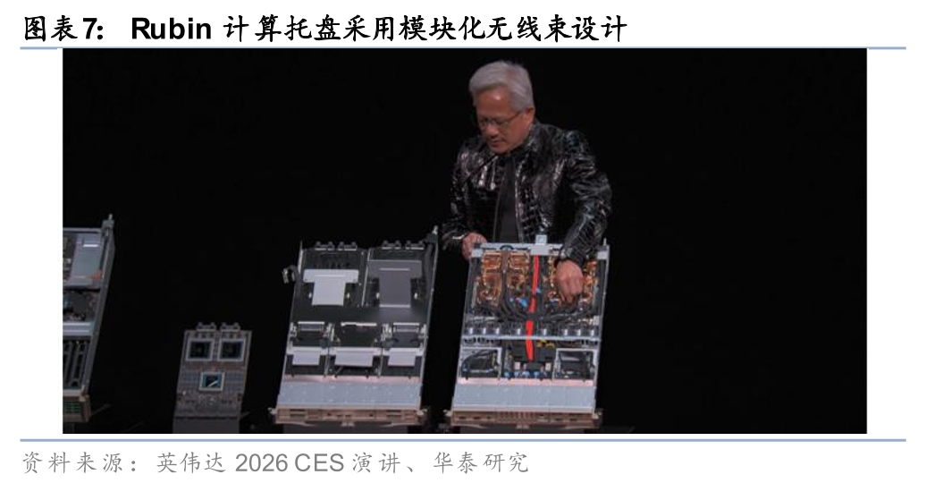 美西时间1月5日,英伟达CEO黄仁勋在2026CES举行演讲。继去年GTC发布Rubin平台以来,本次CES披露更多细节。该平台将涵盖六款核心芯片:Vera CPU、Rubin GPU、NVLink 6 Switch、ConnectX-9 SuperNIC、BlueField-4 DPU与Spectrum-6以太网交换芯片。鉴于英伟达通常于3月GTC发布下一代芯片架构,因此,我们认为此次CES细节披露或只被视为增量信息,发布后盘中股价反应平淡。此外,黄仁勋还强调Rubin将于2H26出货,我们认为其计算托盘采用模块化无线束设计,可缩短组装周期并提升出货效率,有助于缓解此前GB系列交付延迟的问题。其他重要发布包括:1)推出BlueField-4与Context Memory平台,将KV Cache从GPU内存中解耦,缓解推理阶段主机内存的压力(Tom’sHardware测算对应每GPU额外获取约16TB分布式上下文存储);2)发布Alpamayo开源模型,涵盖AlpaSim端到端仿真框架、Alpamayo-1模型等,加速自动驾驶与物理AI布局。