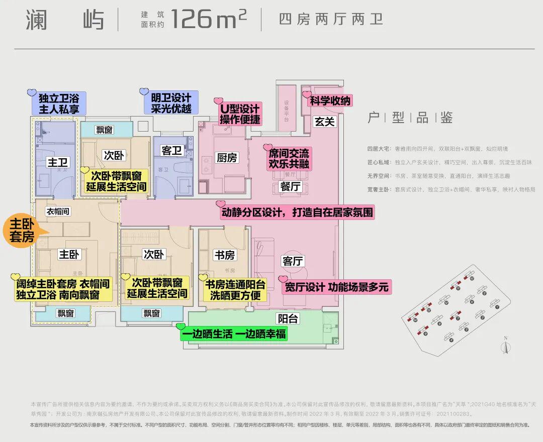 整体布局与建面约126㎡相似,是它的Pro版!约LDKB一体化布局搭配开阔大横厅,形成超级聚厅,承载全家人更丰富的活动场景;阳台开间约7米,主卧为约3.6米大开间的套房。