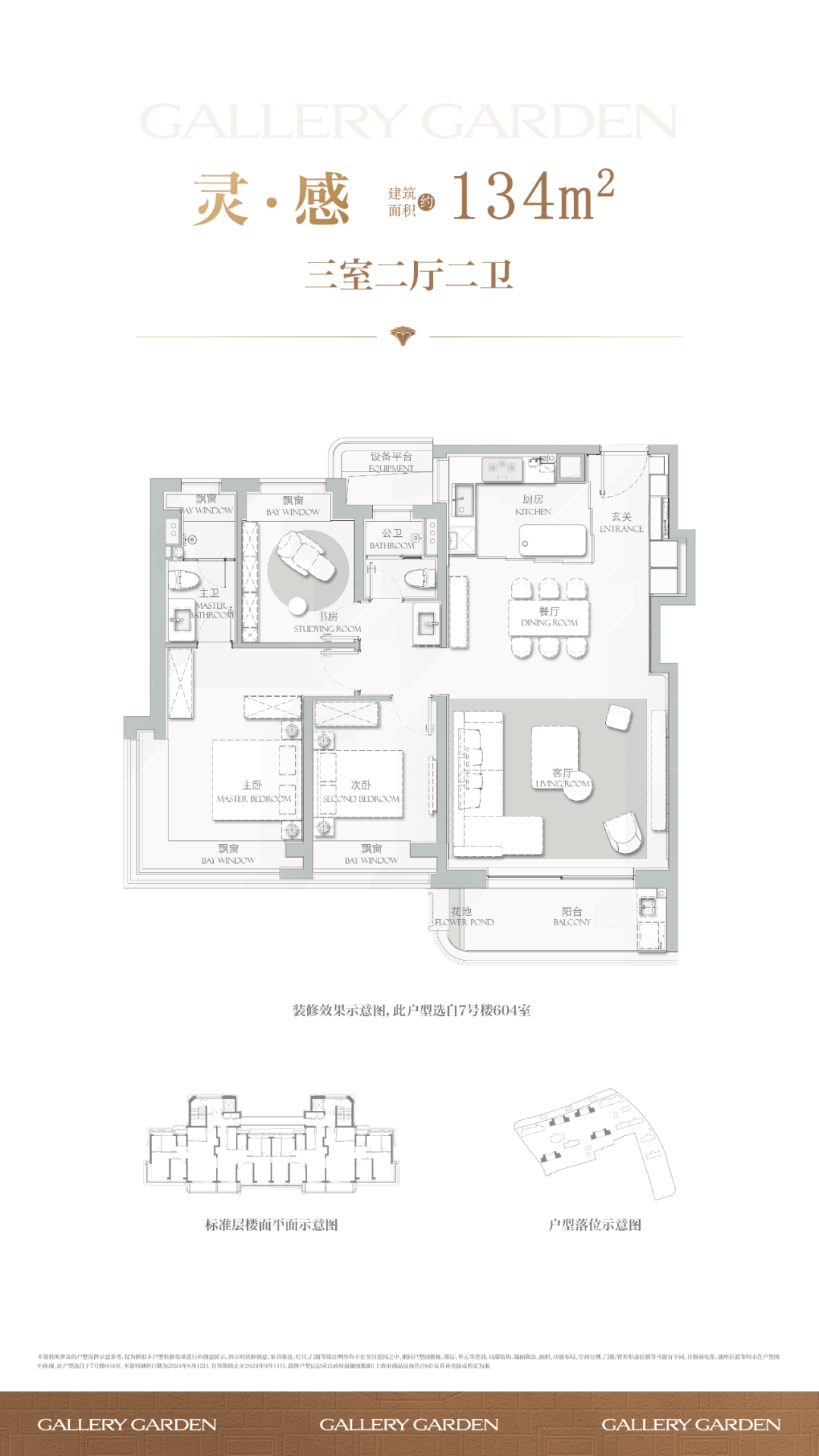 建面约134㎡ 3房2厅2卫▼