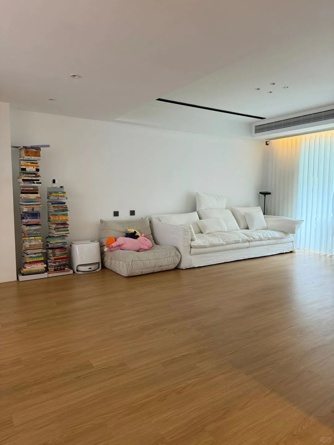 墙面主打白色,通透又显得屋子格外宽敞,地板是浅木色,家里的家具也不多,但每一件都看得出是精挑细选的,实用又有设计感。