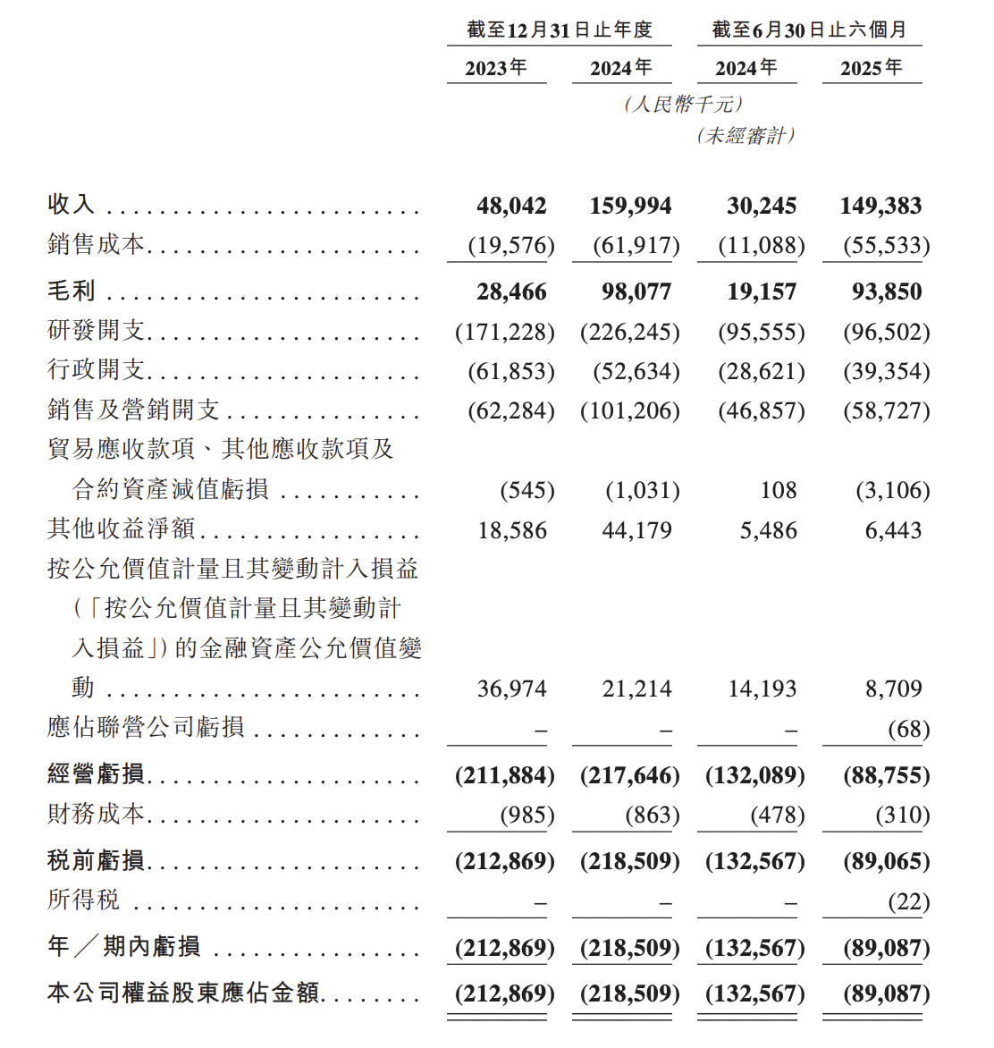 业绩方面,2023年、2024年及2025年上半年,精锋医疗收入分别为4804.2万元、1.6亿元、1.49亿元,年╱期内亏损分别为2.13亿元、2.19亿元、8908.7万元。