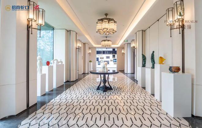 地库入户大堂公区打造,招商臻境源上售楼处电话☎:400-822-5005【预约☎】招商臻境同样也极尽匠心,吊顶上采用了具有海派风格的内凹式弧面造型;廊柱腰线以及门边运用奢石点缀,柱子与柱体采用精致的弧形倒角设计,庄重而不失典雅。