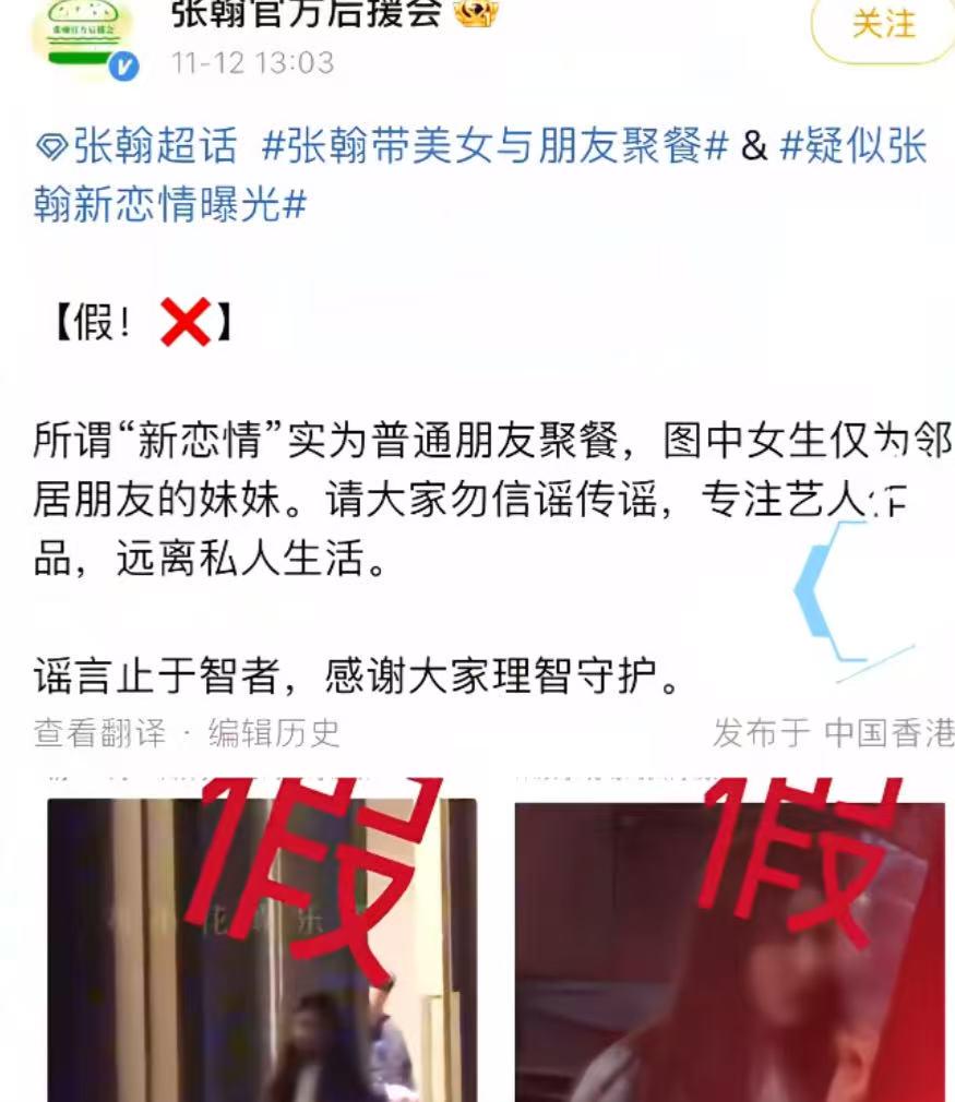 张翰的后援会和粉丝们及时进行了辟谣,说明当时张翰正在忙于话剧《如梦之梦》的排练,根本没有时间谈恋爱。