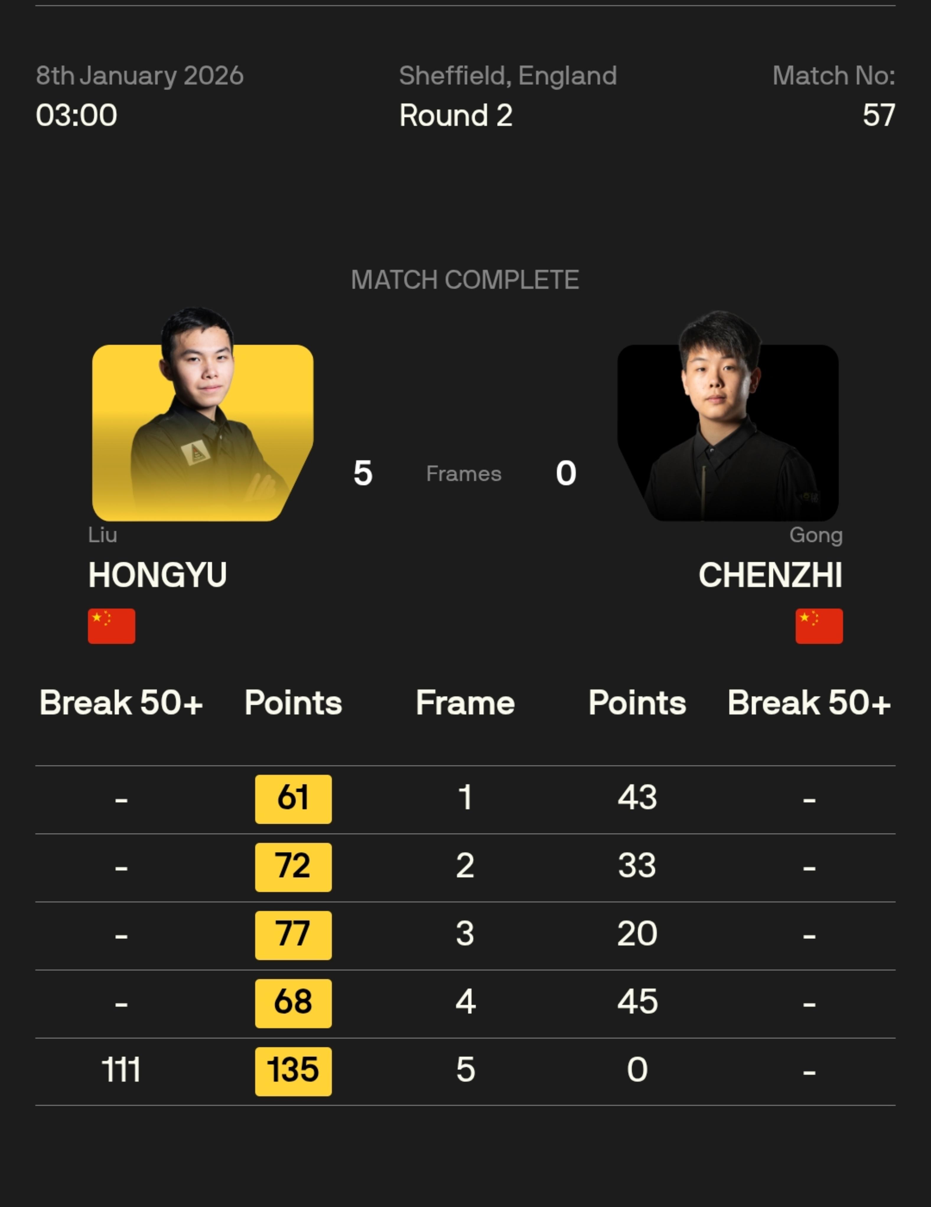 刘宏宇 5-0 巩晨智