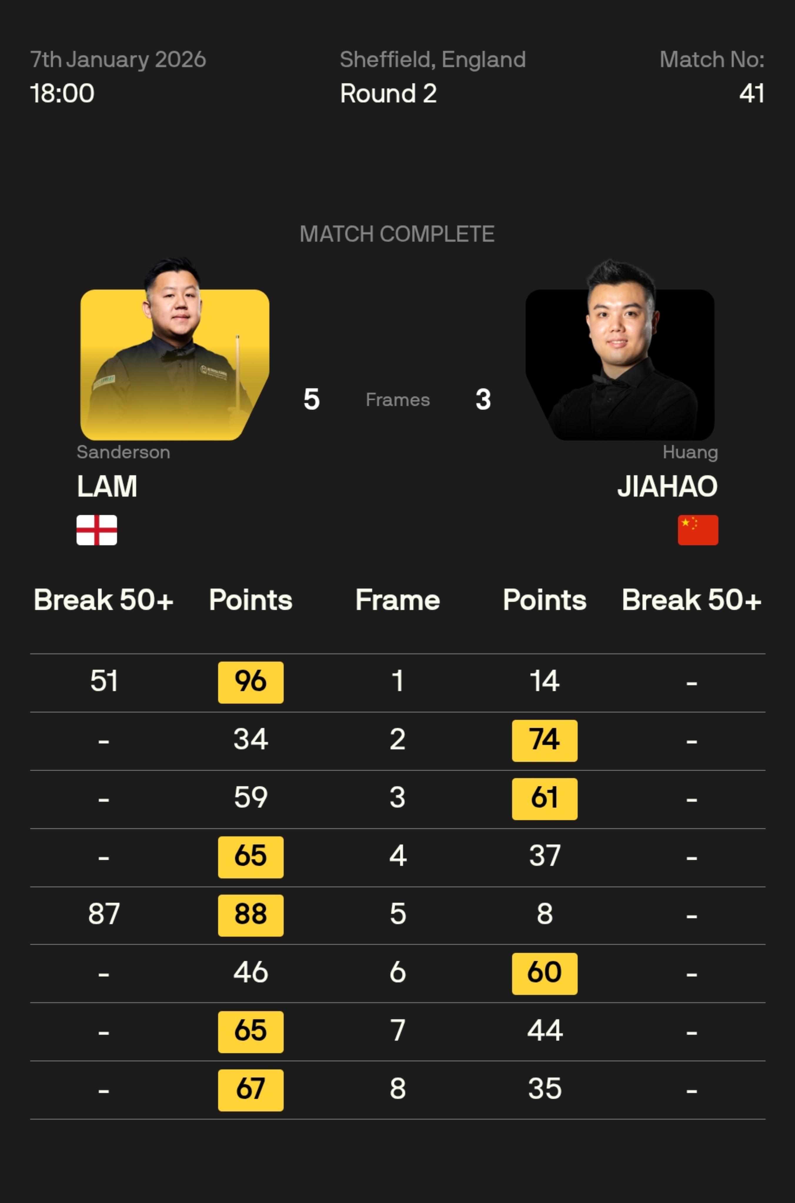 诺鹏·桑卡姆 5-3 山姆·克雷吉