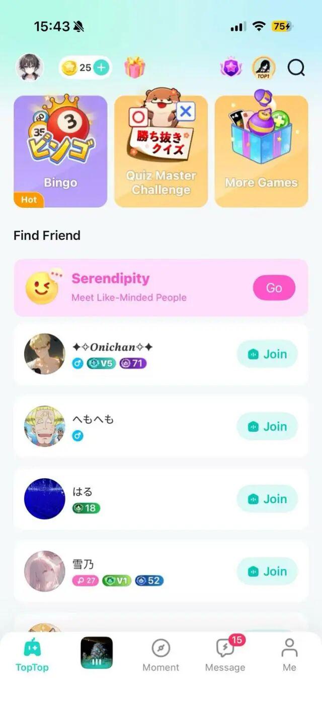 TopTop 小游戏 (1)、语音房 (2)、