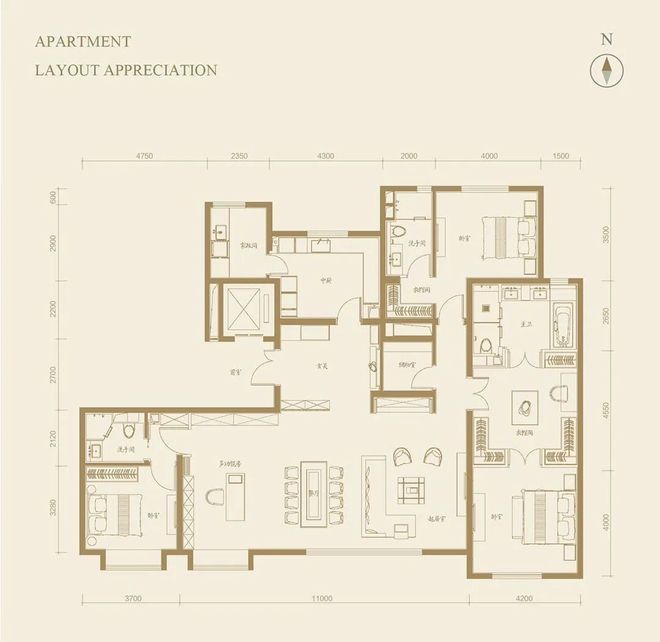 210平米南北4居,总价2500万左右